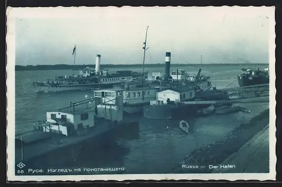 AK Russe, Dampfschiffe am Hafen