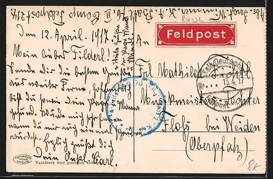 alte Ansichtskarte, gelaufen 1917, guter Zustand