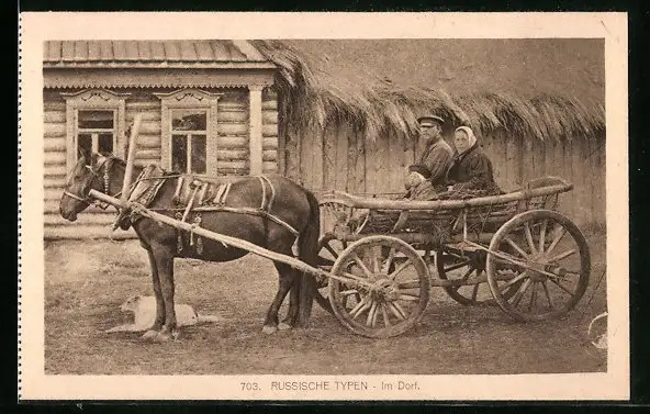 AK Russische Familie in einer Pferdekutsche