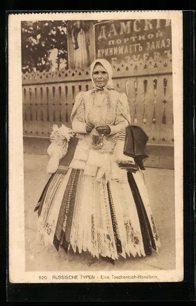 AK Russische Taschentuch-Händlerin