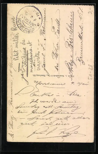 gelaufen 1916, Eckknicke re. oben u. li. unten, guter Zustand