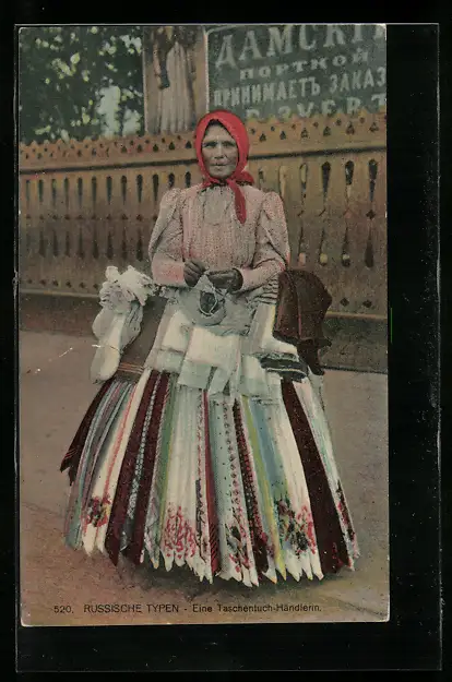 AK Russische Taschentuch-Händlerin