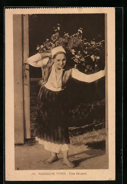 AK Russische junge Bäuerin mit Ernte auf dem Rücken