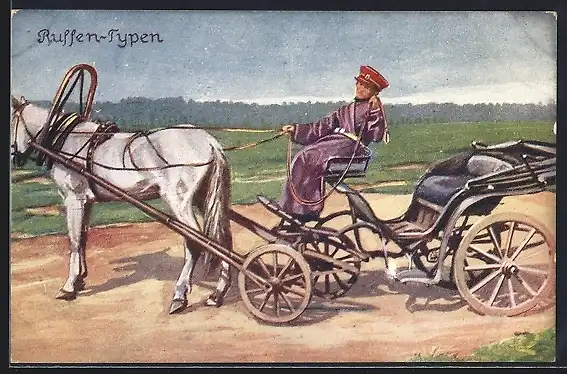 AK Russischer Mann auf einer Pferdekutsche
