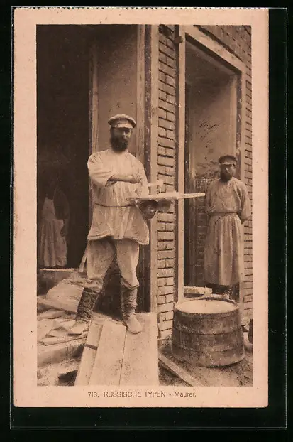 AK Russischer Maurer bei der Arbeit