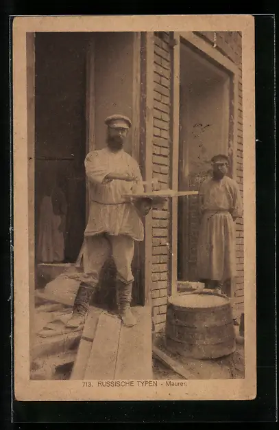 AK Russischer Maurer bei der Arbeit