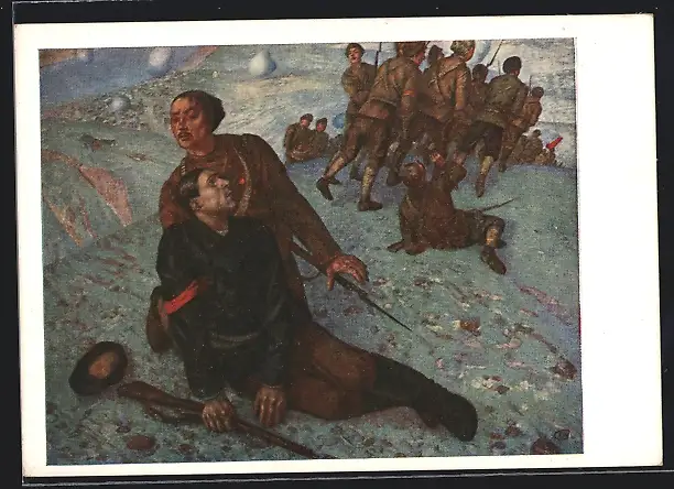 AK Russischer Soldat hilft verwundetem Kameraden, Russischer Bürgerkrieg