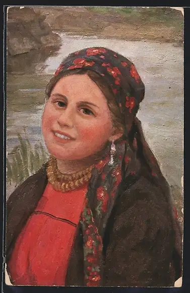 AK Russisches Mädchen mit geblümtem Kopftuch