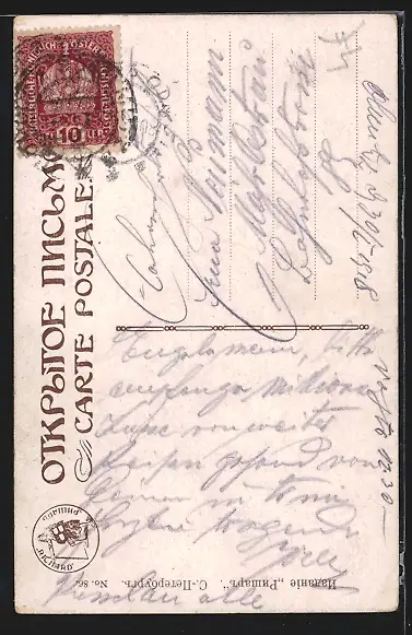 Personenbezogene Daten auf der Rückseite der Karte wurden durch blauen Textmarker unkenntlich gemacht. Die blauen Stellen sind auf die Vorderseite durchgeweicht und wirken sich negativ auf das Postkartenfoto aus