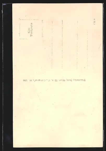 Personenbezogene Daten auf der Rückseite der Karte wurden durch blauen Textmarker unkenntlich gemacht. Die blauen Stellen sind auf die Vorderseite durchgeweicht und wirken sich negativ auf das Postkartenfoto aus