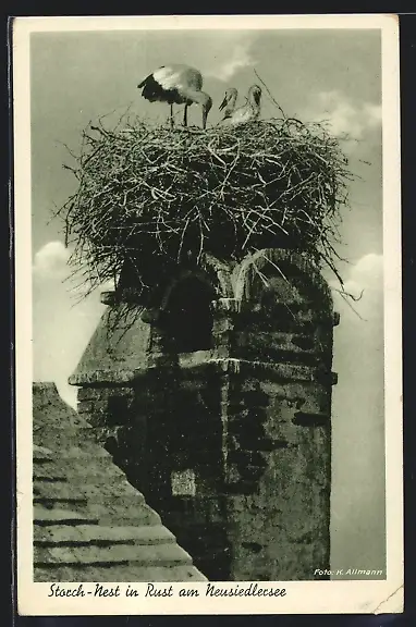 AK Rust /Neusiedlersee, Blick auf Storch-Nest