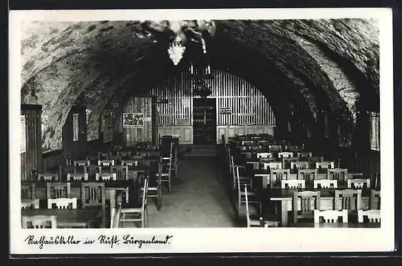 AK Rust, Rathauskeller mit Tischen und Stühlen