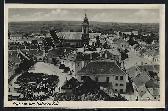 AK Rust am Neusiedlersee, Ortspartie aus der Vogelschau