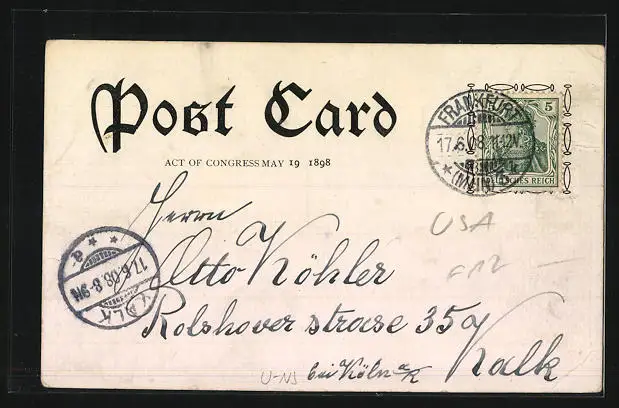 gelaufen 1908, Eckknicke li., guter Zustand