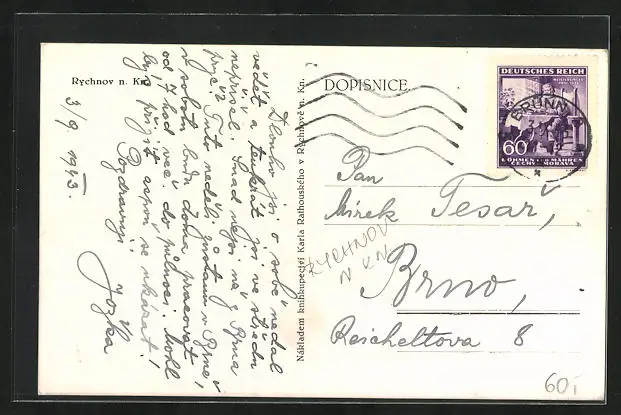 AK Rychnov n. Kn., Totalansicht von Anhöhe aus