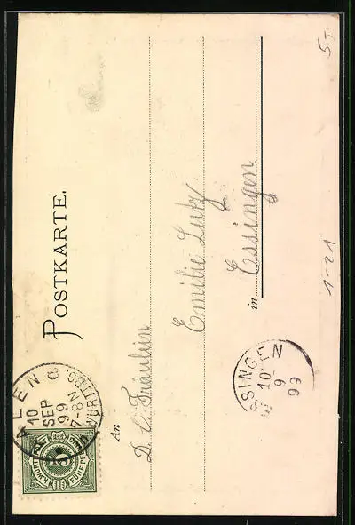alte Ansichtskarte, gelaufen 1899, guter Zustand