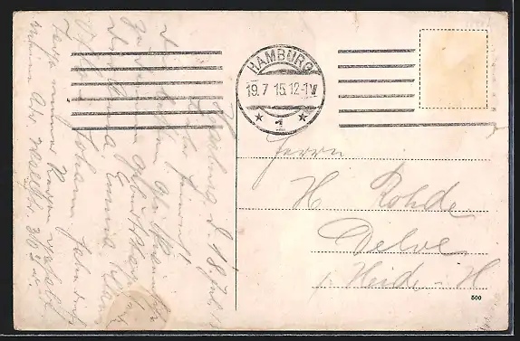 alte Ansichtskarte, gelaufen 1915, Briefmarke entfernt, Einrisse li. oben, Bugspur li. oben, Abriebspur unten mittig