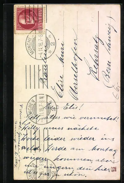 alte Ansichtskarte, gelaufen 1916, Stempelspur, guter Zustand