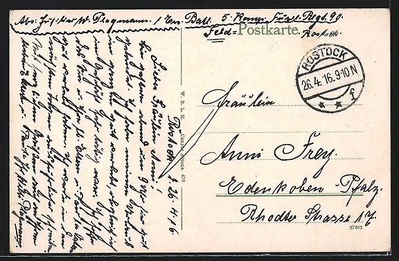 alte Ansichtskarte, gelaufen 1916, Eckknick li. unten, guter Zustand