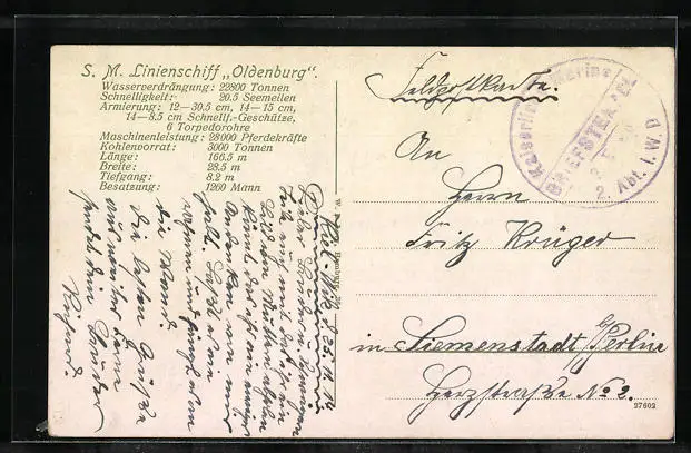 AK SM Linienschiff Oldenburg auf Steuerbord