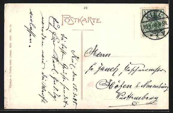 alte Ansichtskarte, gelaufen 1908, Eckknicke oben, guter Zustand