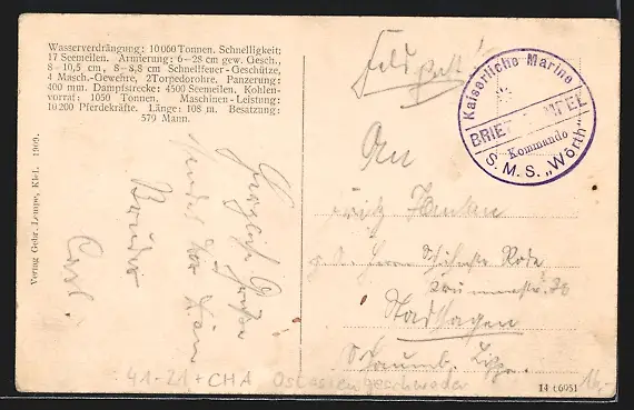 AK SM Linienschiff Wörth des Ostasiengeschwaders liegt vor Anker