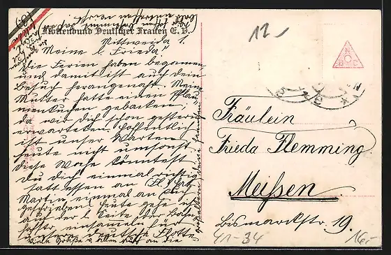 alte Ansichtskarte, gelaufen, Briefmarke entfernt, guter Zustand