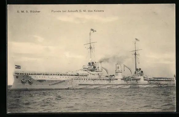 AK SMS Blpcher, Parade bei Ankunft SM des Kaisers