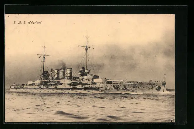 AK S.M.S. Helgoland, das Kriegsschiff auf hoher See gesehen