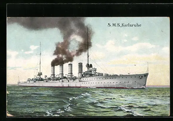 AK SMS Kriegsschiff Karlsruhe bei leichtem Wellengang