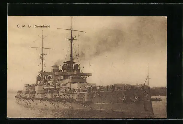 AK SMS Kriegsschiff Rheinland in der Bugansicht