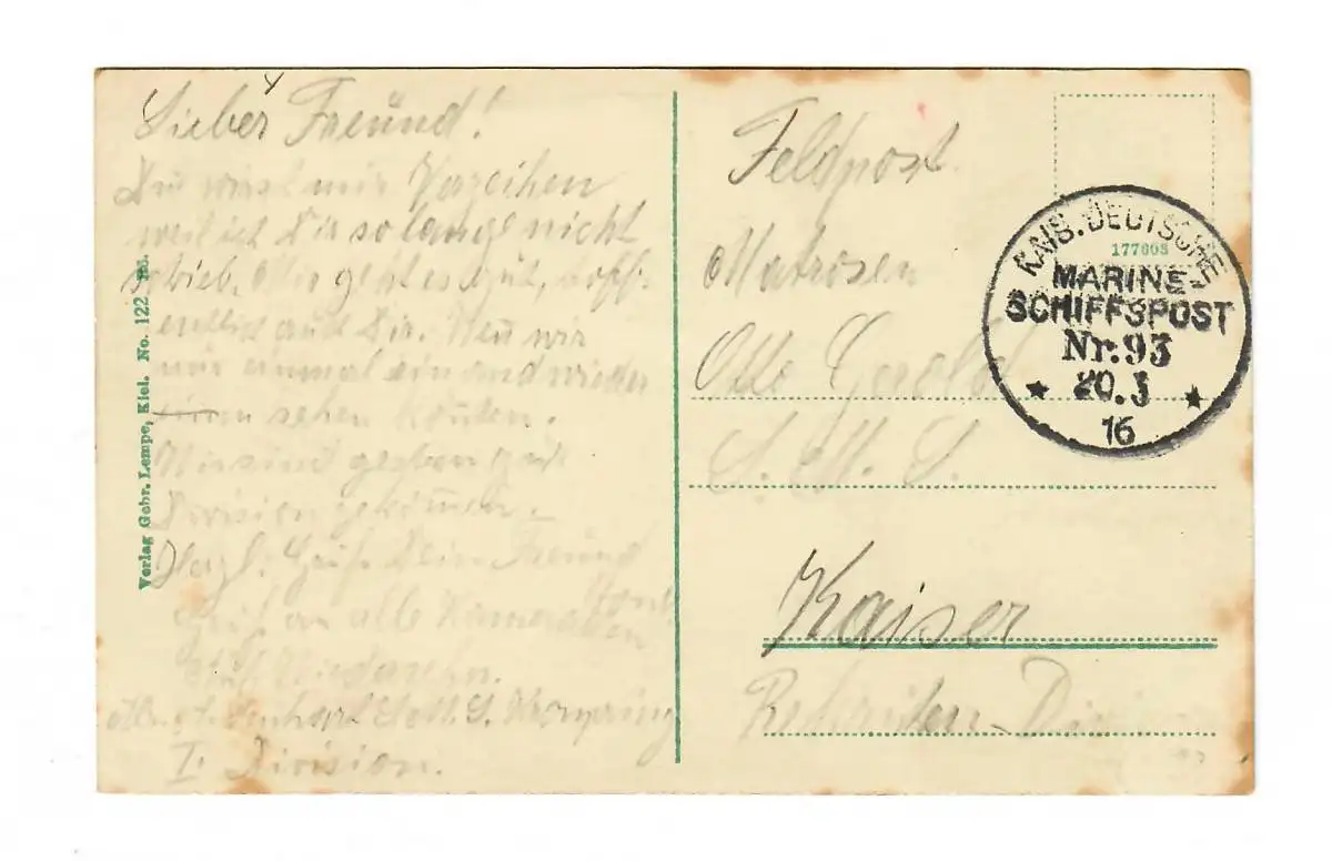 AK S.M.S. Kronprinz, Marine Schiffspost No 93 nach Kaiser, 1916