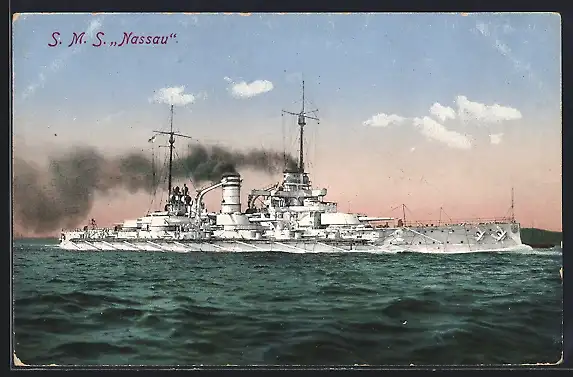 AK S.M.S. Nassau auf See, Kriegsschiff