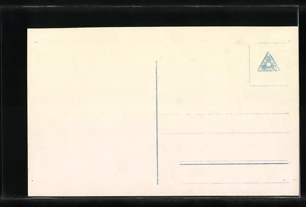 Personenbezogene Daten auf der Rückseite der Karte wurden durch blauen Textmarker unkenntlich gemacht. Die blauen Stellen sind auf die Vorderseite durchgeweicht und wirken sich negativ auf das Postkartenfoto aus