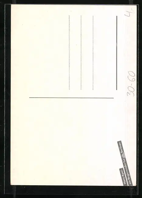 Personenbezogene Daten auf der Rückseite der Karte wurden durch blauen Textmarker unkenntlich gemacht. Die blauen Stellen sind auf die Vorderseite durchgeweicht und wirken sich negativ auf das Postkartenfoto aus
