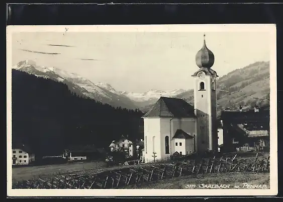 AK Saalbach, Ortspartie mit Kirche und Penhab