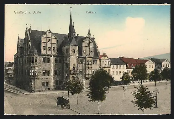 AK Saalfeld /Saale, Rathaus mit Strasse
