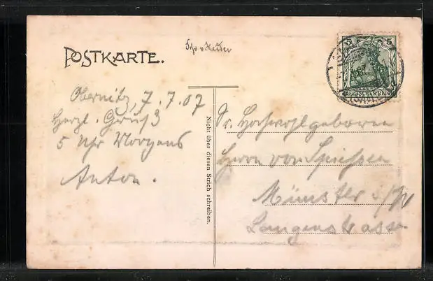 alte Ansichtskarte, gelaufen 1907, leicht fleckig, guter Zustand