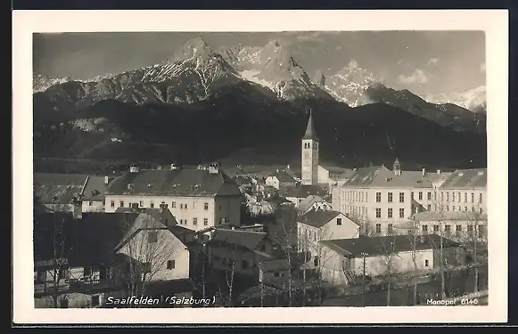 AK Saalfelden, Ortsansicht mit Gebirgspanorama