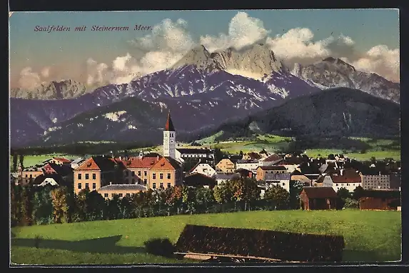 AK Saalfelden, Ortsansicht mit Steinernem Meer