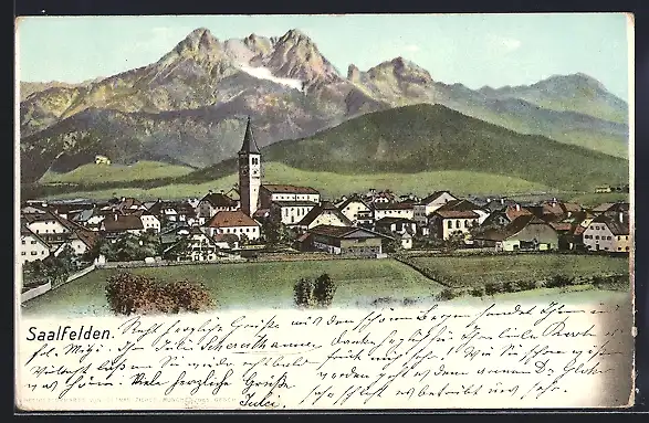 AK Saalfelden, Panorama mit Gebirge