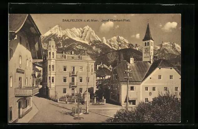 AK Saalfelden a. st. Meer, Josepf Eberhart-Platz mit Kirche