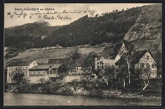 AK Saalhäuser / Kösen, Totalansicht mit Flusspartie