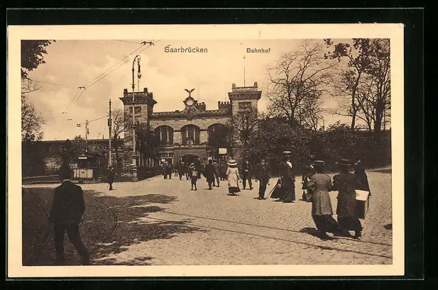AK Saarbrücken, Bahnhof mit Strassenbahn