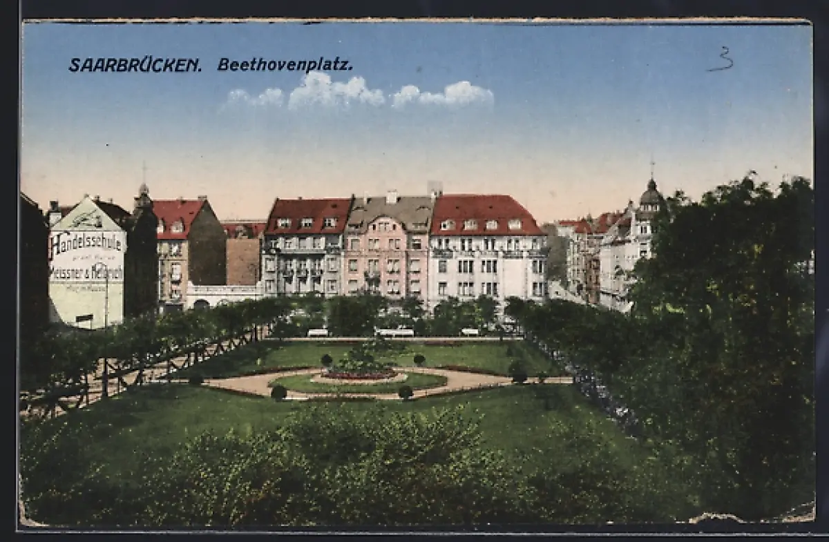 AK Saarbrücken, Beethovenplatz, Handelsschule