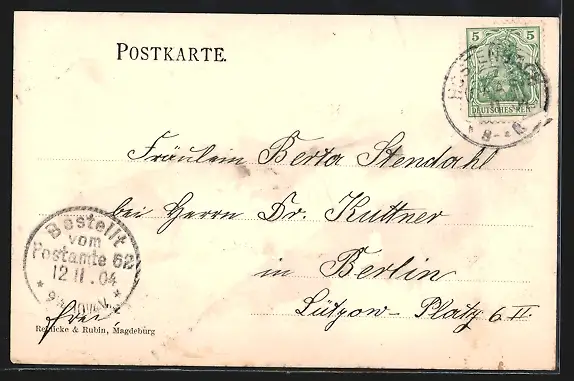 alte Ansichtskarte, gelaufen 1904, Eckknick re. unten, guter Zustand