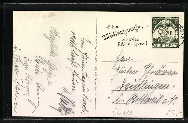 alte Ansichtskarte, gelaufen 1935, Klebespur li. oben, guter Zustand