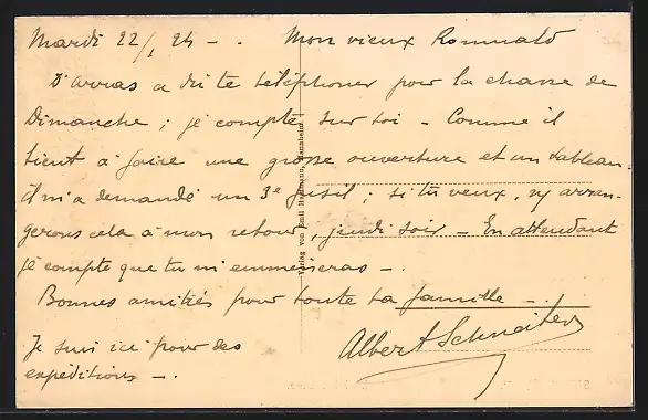Personenbezogene Daten auf der Rückseite der Karte wurden durch blauen Textmarker unkenntlich gemacht. Die blauen Stellen sind auf die Vorderseite durchgeweicht und wirken sich negativ auf das Postkartenfoto aus