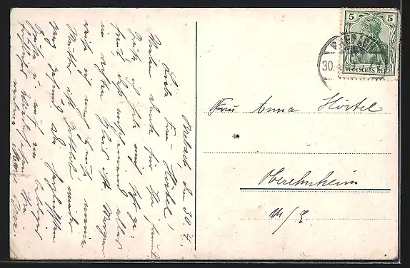 alte Ansichtskarte, gelaufen 1909, Eckknick re. unten, minimaler Einriss re. mittig, guter Zustand