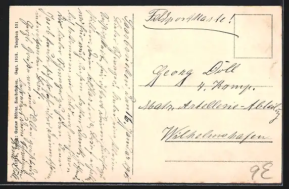 alte Ansichtskarte, gelaufen 1915, Abriebspur unten re., guter Zustand